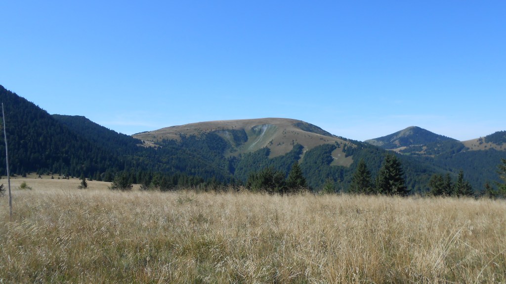 Afterwards, we had a portion of easy descent towards a pass where I left the main trail back in 2013. This time, we faced the last major ascension towards the highest peak of the ‘Velká Fatra’ mountain range. After ascending above the forest again, we could enjoy the sun’s warmth on a stretch of grassy plains spanning maybe some 7km of the trail.