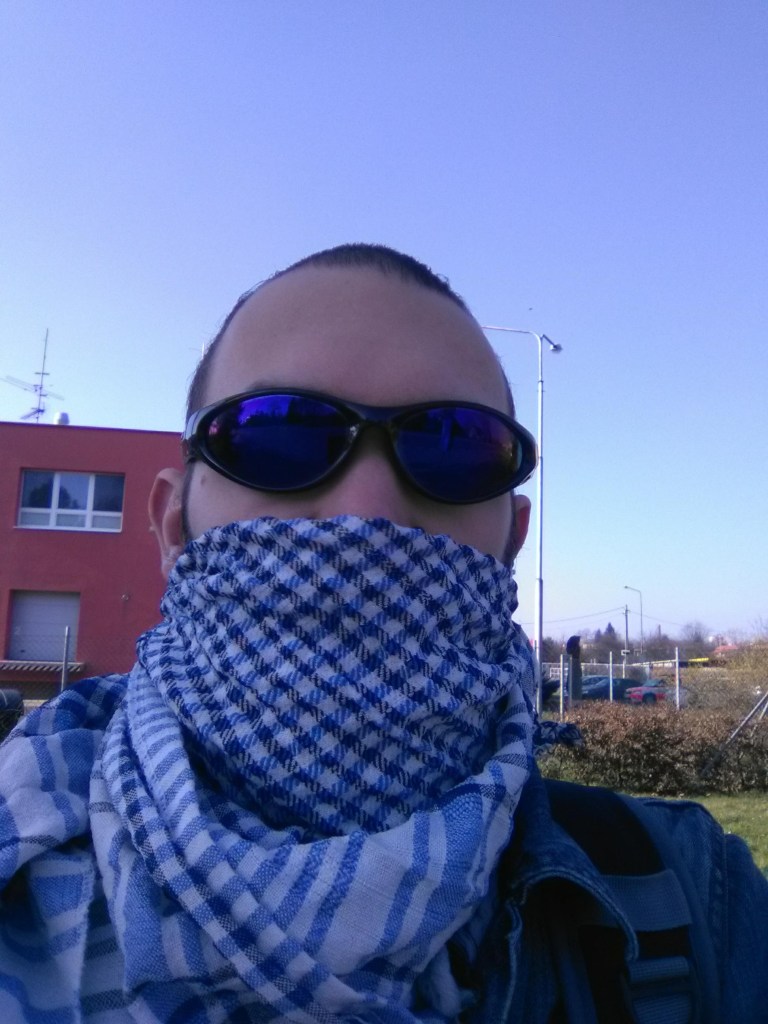 And stay safe, even if you have to improvise. Such as wrapping anything suitable you find in the depths of your wardrobe around your face while going on with your life as normally as possible.
