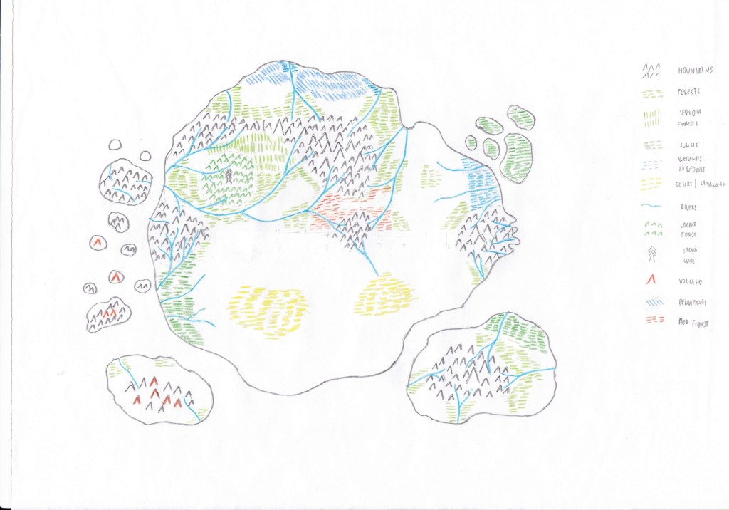 I’ve also started to work on the map and got some early results. I started with my sketch as the base for layout reference…