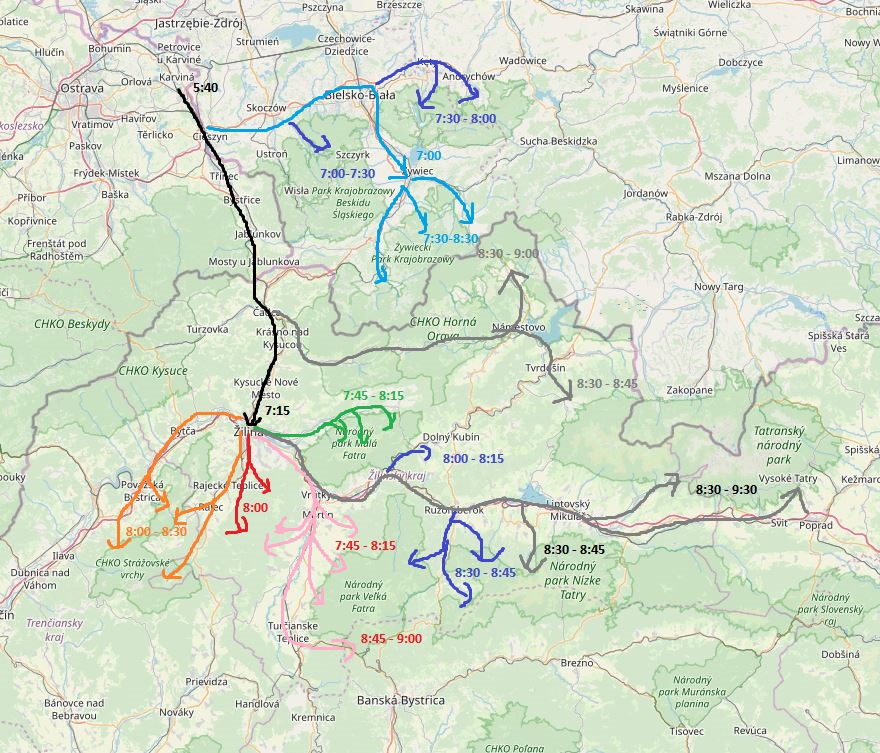 Majority of my travels is done with large group of people organised in hiking club. That way, we can hire a bus and a driver that can get us almost anywhere, as long as the roads are wide enough to allow a bus to pass through. No schedules, being picked up at my hometown and dropped of just below the hills and with the costs split between 50 people the bus can carry, both the price and comfort is something even public transport can’t match. The reach in this way of transport is around 250km road distance for one-day return trip limited only by the landscape, borders being almost irrelevant.