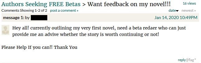 I’ve seen countless posts in Goodreads groups focused on advice/beta reading that looked like this: